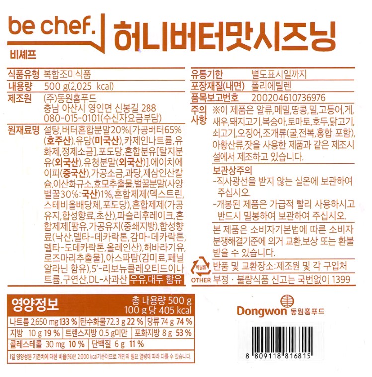 삼조쎌텍 허니버터맛시즈닝(500g/EA)