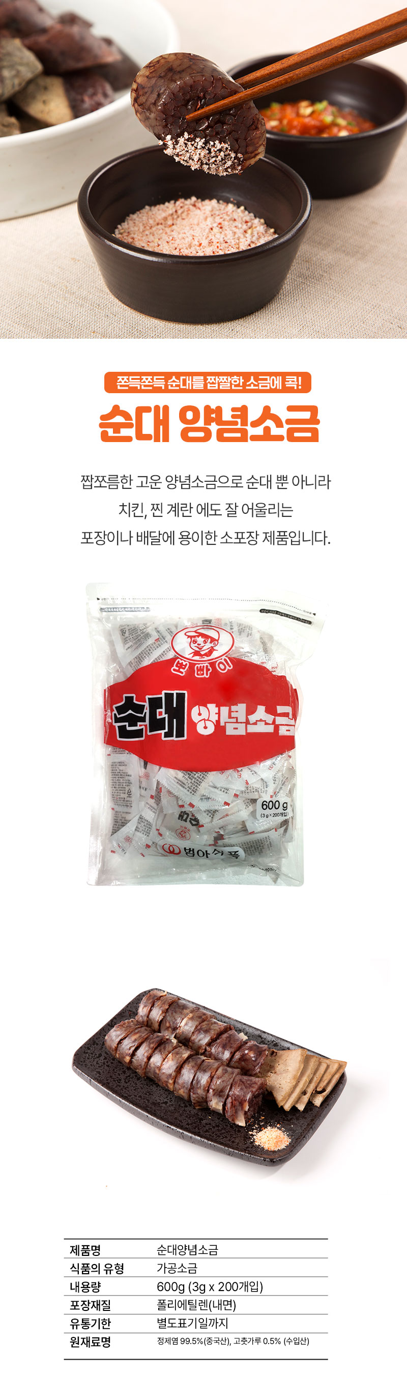 간단설명 : 순대전용 포장 소금입니다. 1봉 200입
