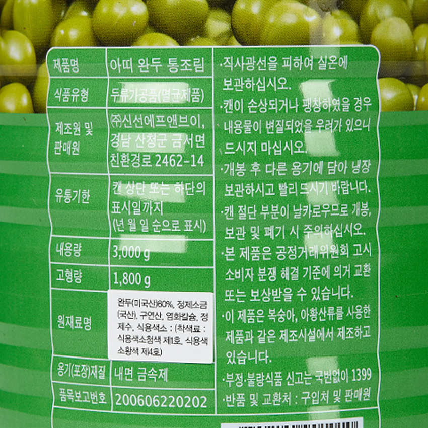 아띠 완두콩캔(3Kg/EA) 이미지