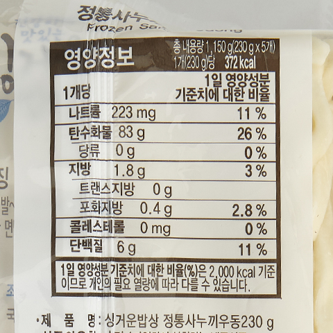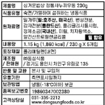 동성식품 사누끼우동면(230g*5개입 1.15Kg/EA)x8 냉동면 이미지