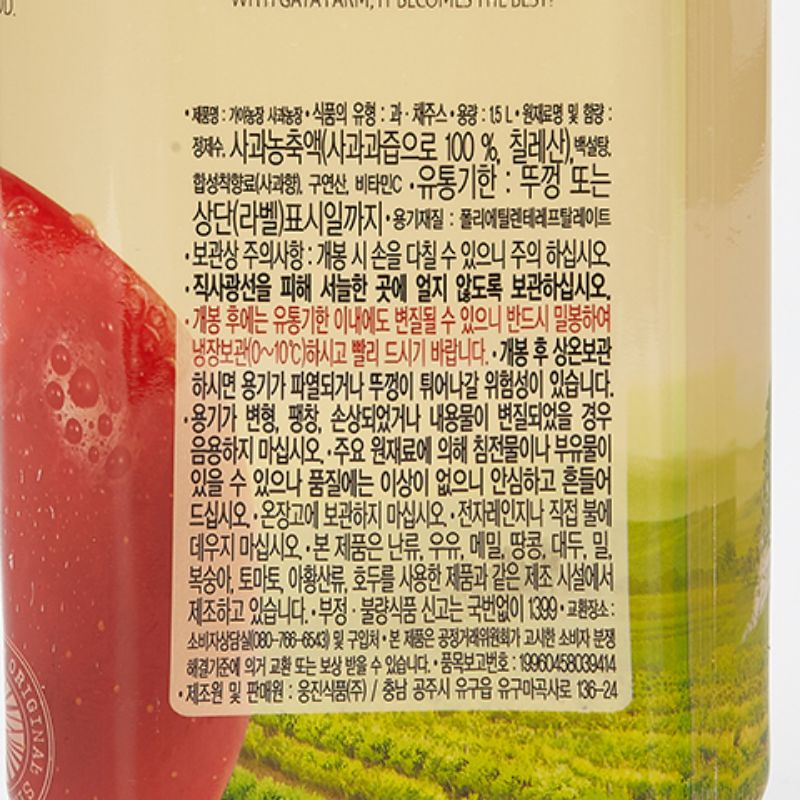 가야농장 사과주스(1.5L 1.5Kg/EA) X 12개입 이미지