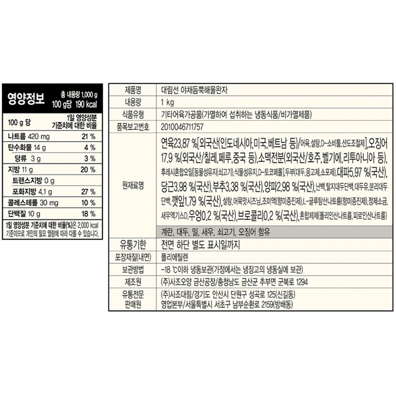 사조대림 야채듬뿍해물완자(14±2g*67±5개입 1Kg/EA)
