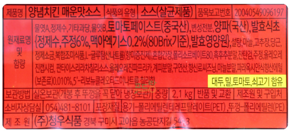 청우 매운맛치킨소스(2.1Kg/EA)