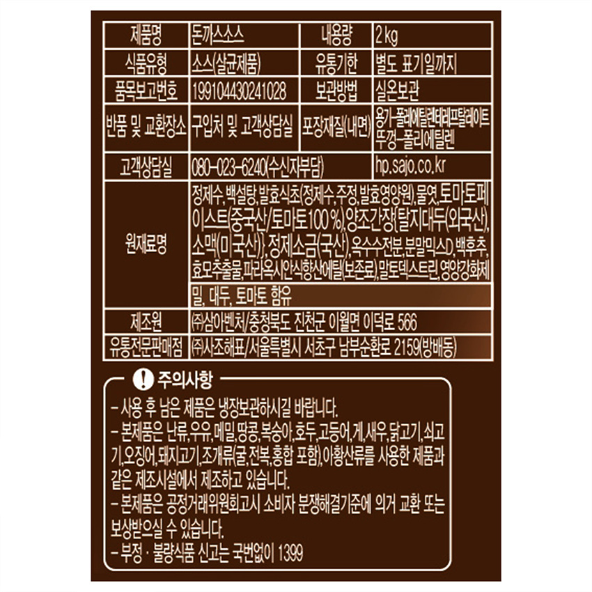 사조해표 돈까스소스(2Kg/EA) 이미지