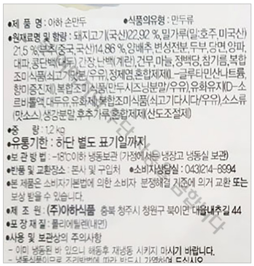 아하식품 고기손만두(28g*50입 1.4Kg/EA) 고기만두