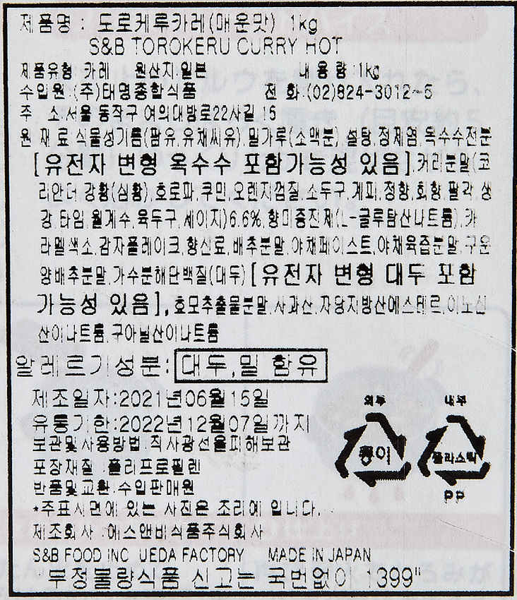 토로케루 매운맛카레(1Kg/EA) 커리 이미지