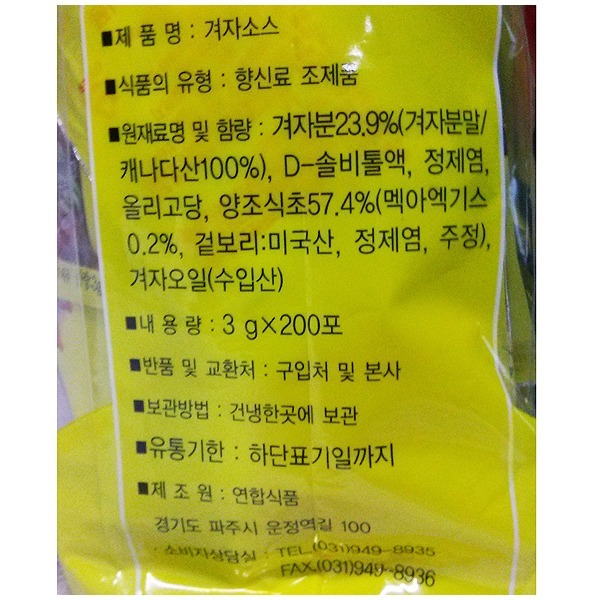 연합 겨자소스(3g*200개입 일회용 600g/EA)