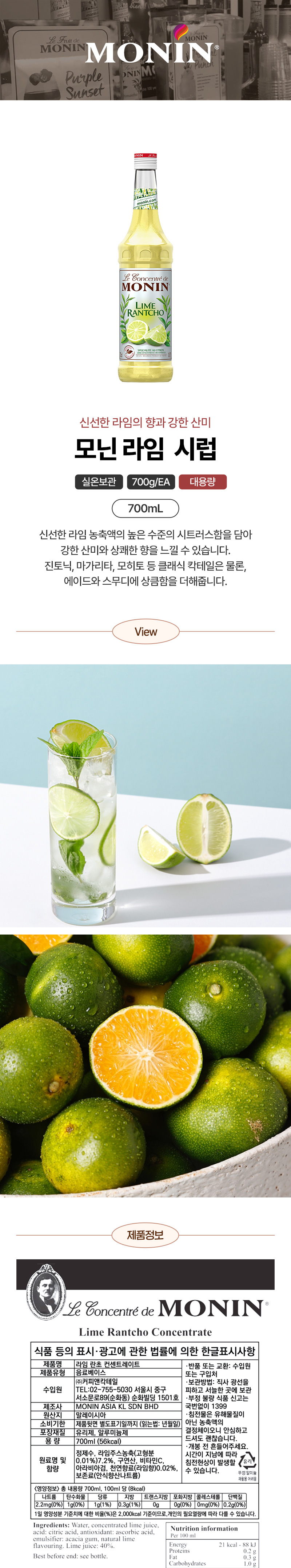 모닌 라임 시럽(700ml 700g/EA)