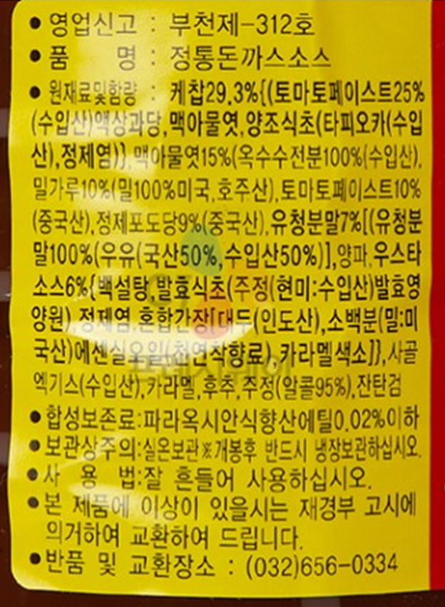 원재료명 및 함량