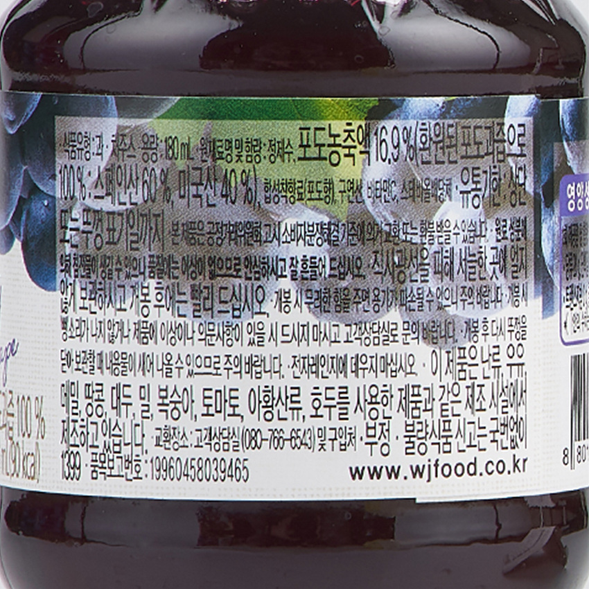 자연은 포도주스(병_180ml*12입 3.72Kg/EA) 이미지