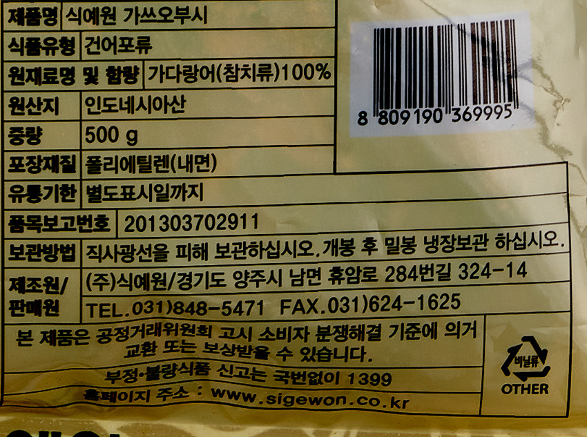 식예원 가쓰오부시(국물용 500g/EA) 이미지