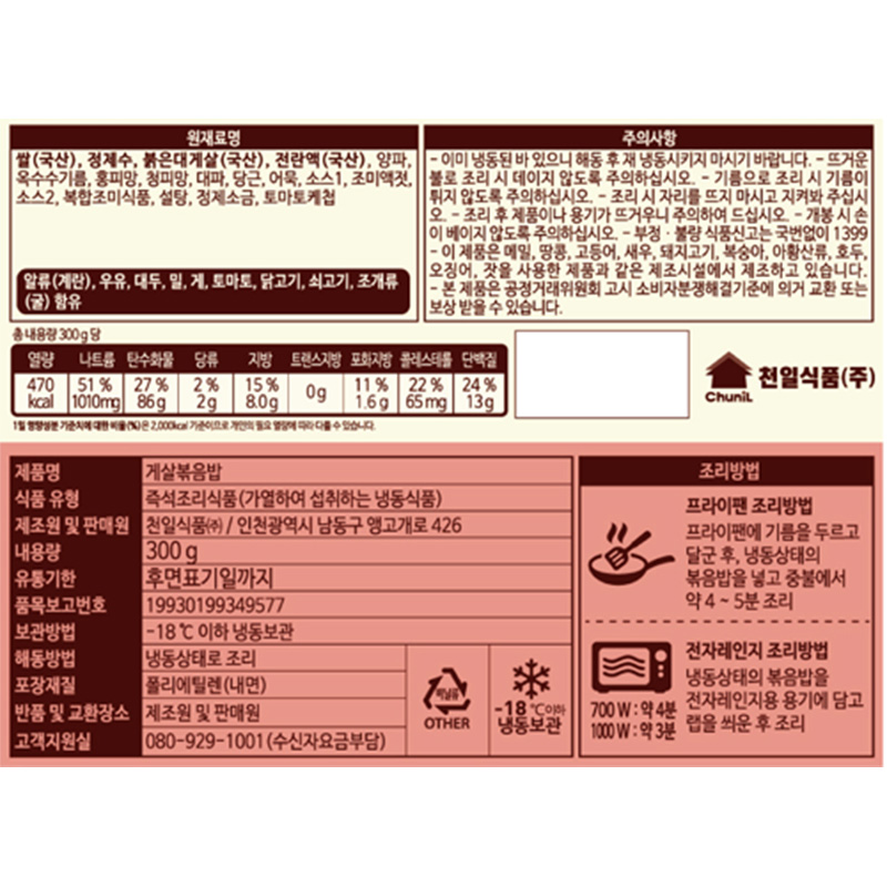 천일식품 게살볶음밥(300g/EA) 볶음밥 천일