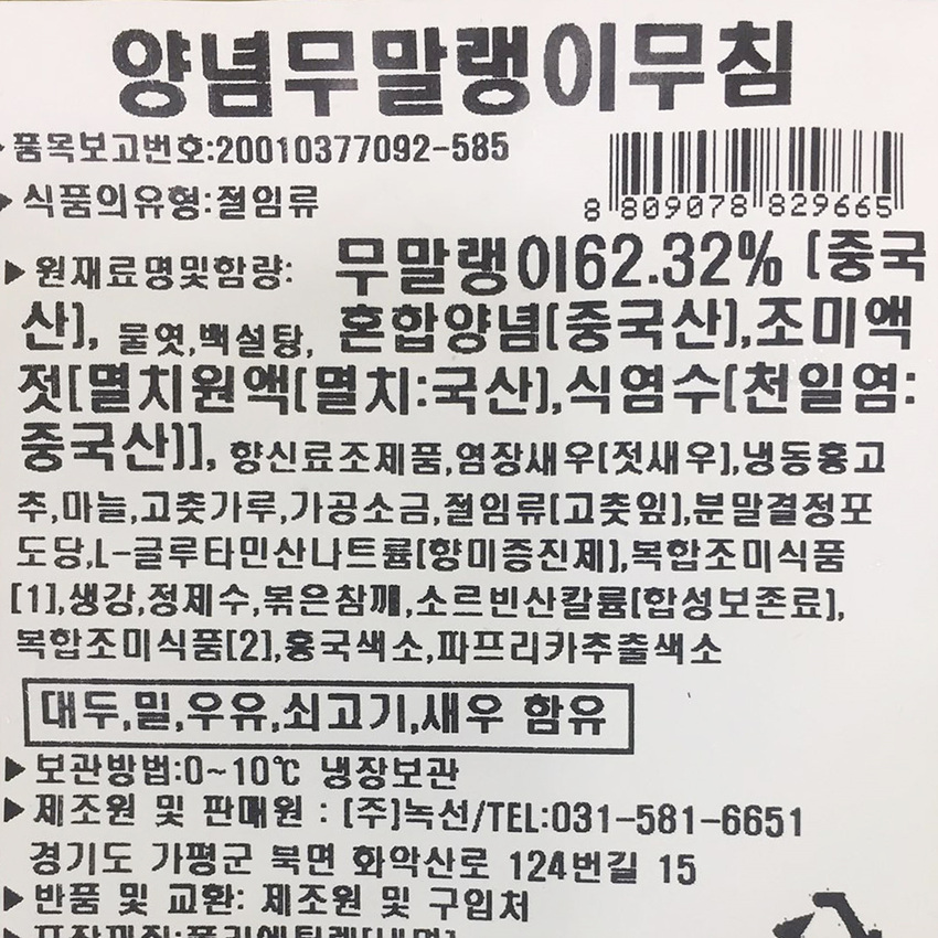 녹선 무말랭이무침(1Kg/EA) 업소용 반찬