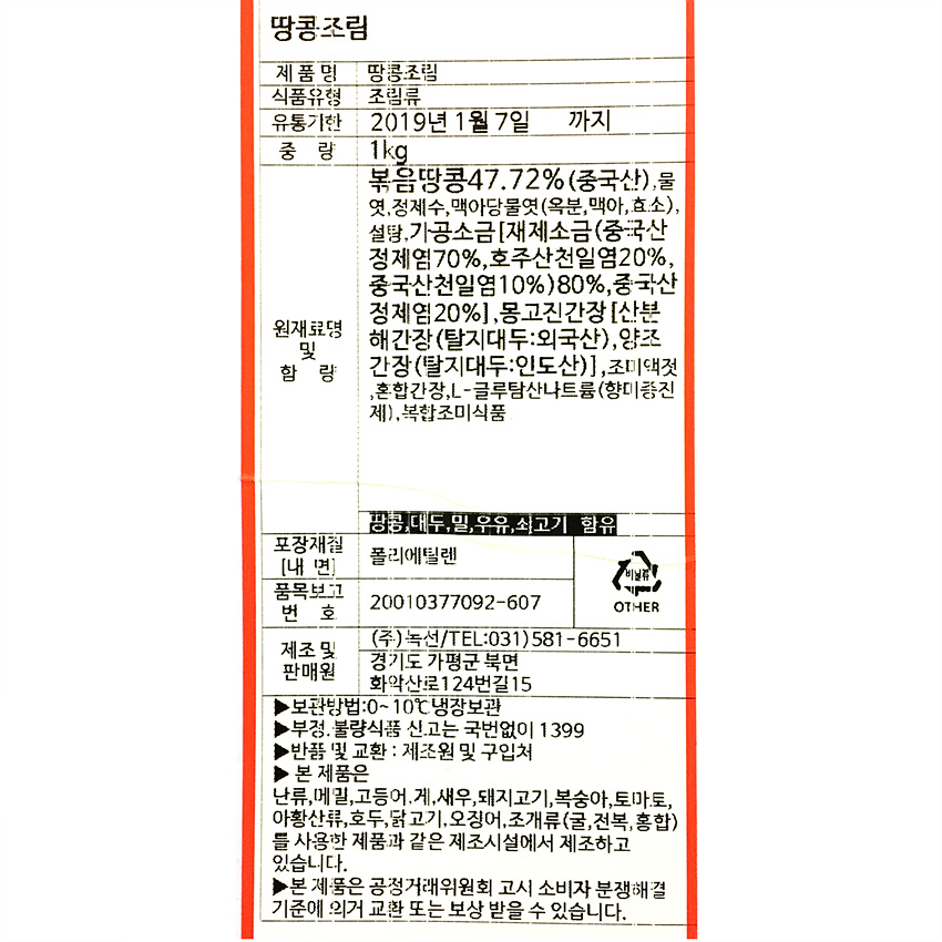 녹선 땅콩조림(1Kg/EA) 업소용 반찬
