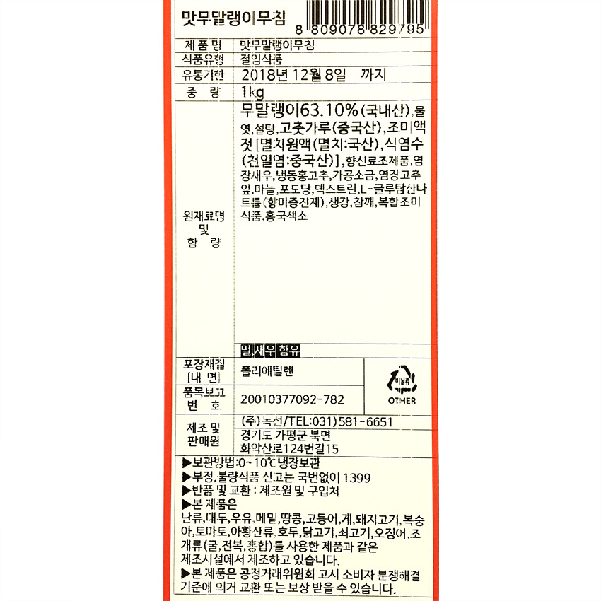 녹선 무말랭이무침(1Kg/EA) 업소용 반찬