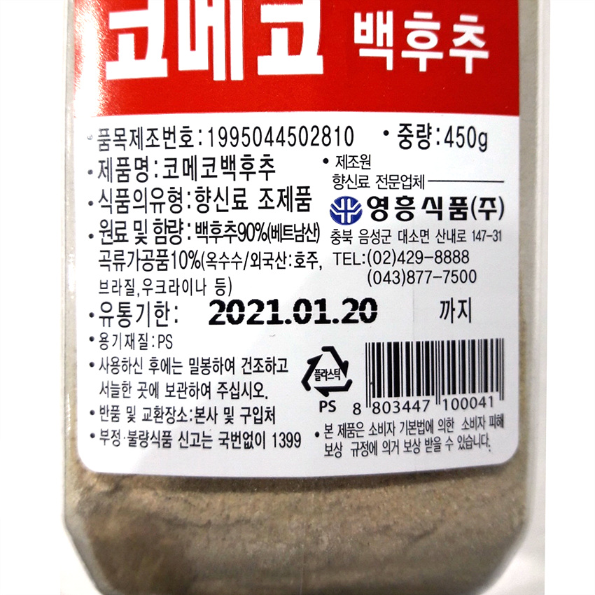 본 제품은 제품입고일별 유통기한 또는 품질유지기한이 상이하므로, 필요시 고객센터로 문의하여 주십시오. 제조일로부터 365일 까지