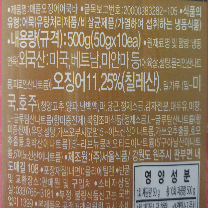 서울식품 매콤오징어바(50g*10입 500g/EA)