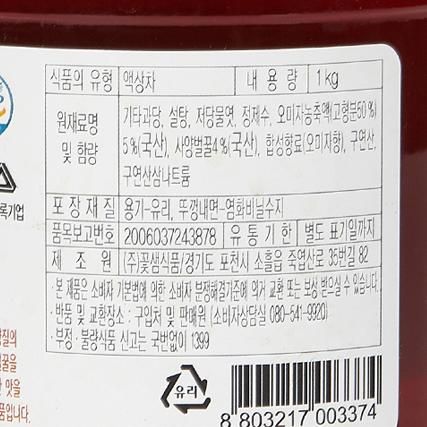 꽃샘식품 꿀오미자차(1Kg/EA) 이미지