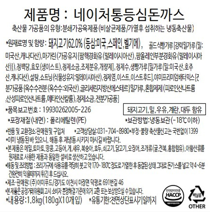 야미 네이처 통등심돈까스(180g*10입 1.8Kg/EA)