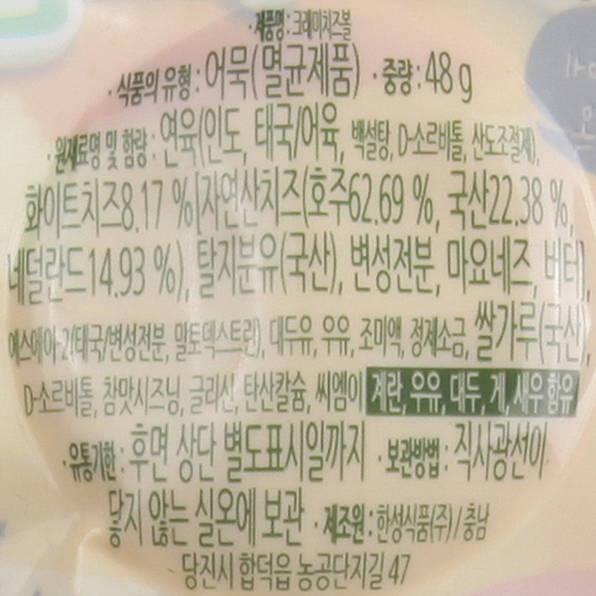 한성 크래미치즈볼(48g(12g*4개)*40입 1.92Kg/BOX) 이미지