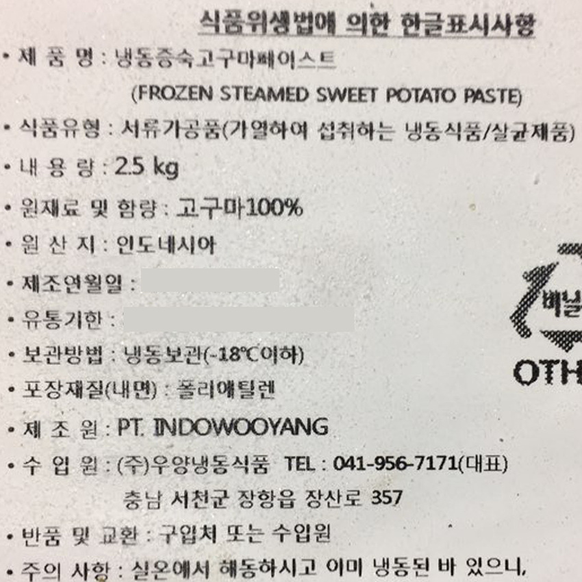 냉동고구마페이스트(2.5Kg/EA) 이미지