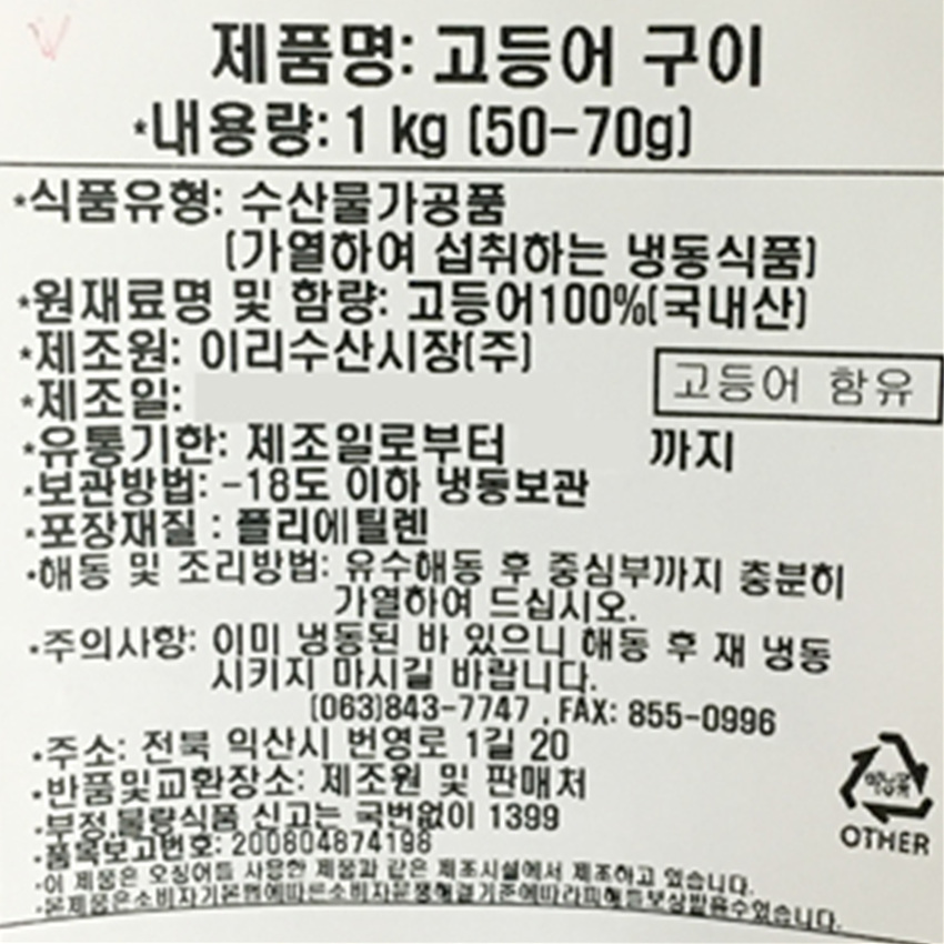 고등어(내장미제거_50~70g/토막 구이용 KG)/국내산