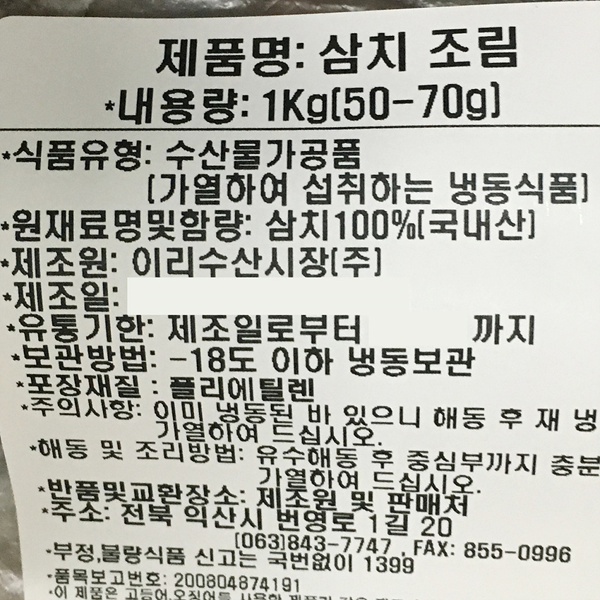 삼치(내장미제거_50~70g/토막 조림용 KG)/국내산