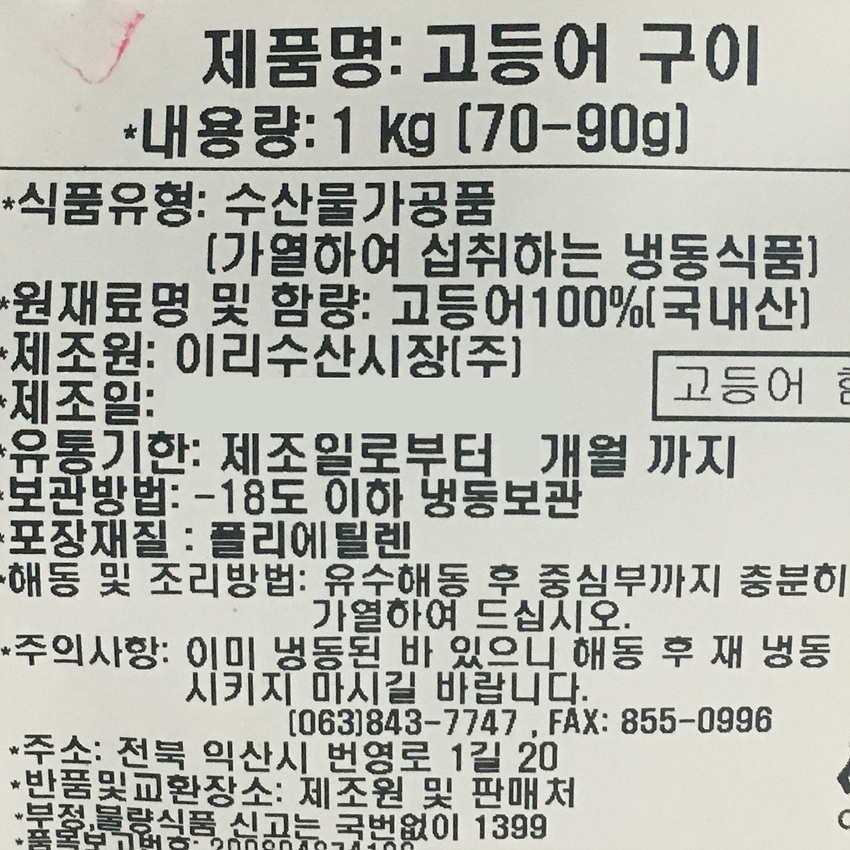 고등어(내장미제거_70~90g/토막 구이용 KG)/국내산