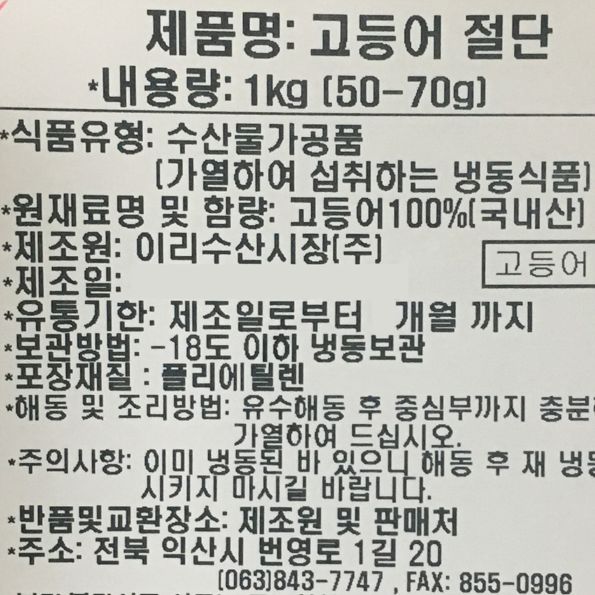 고등어(내장미제거_50~70g/토막 조림용 KG)/국내산 이미지