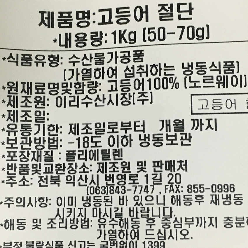 고등어(내장제거_50~70g/토막 조림용 KG)