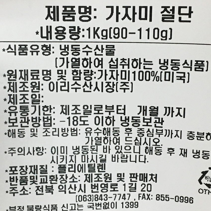 가자미(내장제거_90~110g/토막_평균100g 100g/EA)