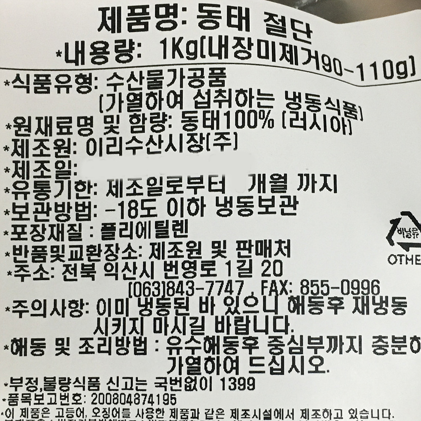 동태(내장미제거_90~110g/토막 KG) 이미지