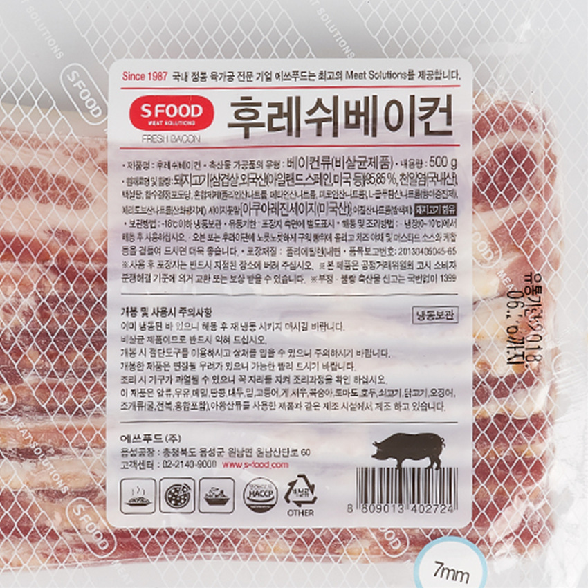 에쓰푸드 베이컨(7mm 500g/EA) 이미지