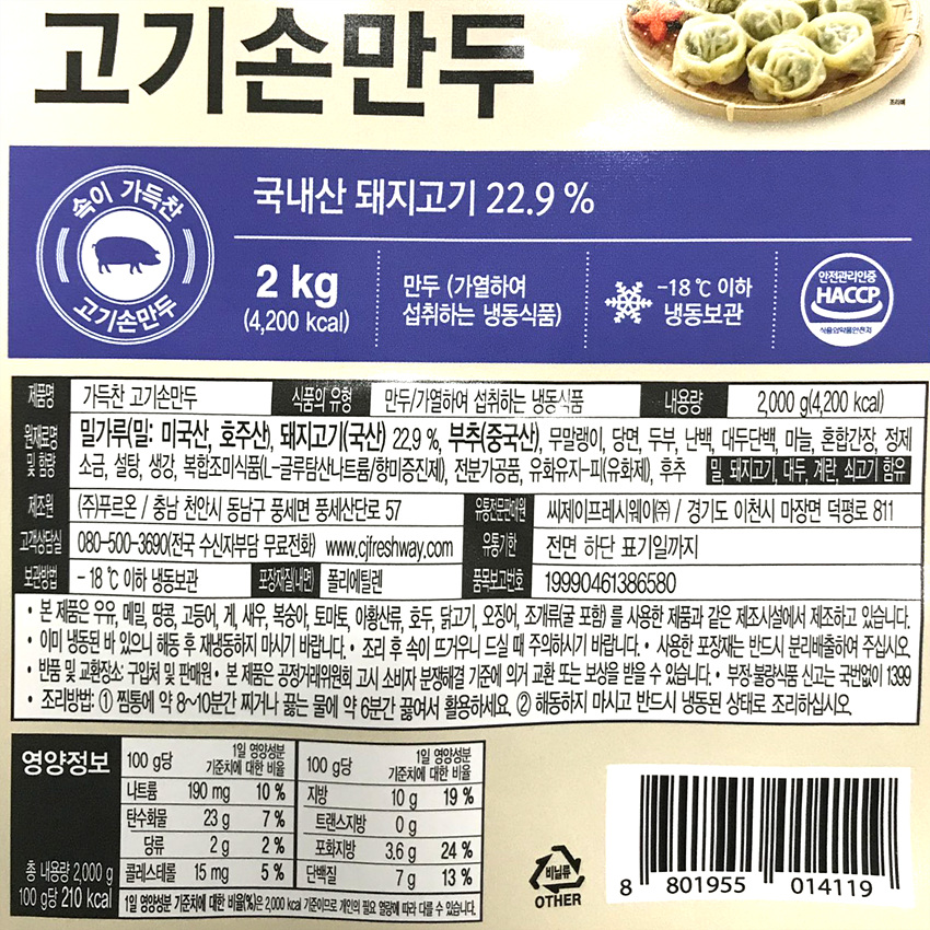 이츠웰 가득찬고기손만두(28±1.5g*71±2입 2Kg/EA) 고기만두