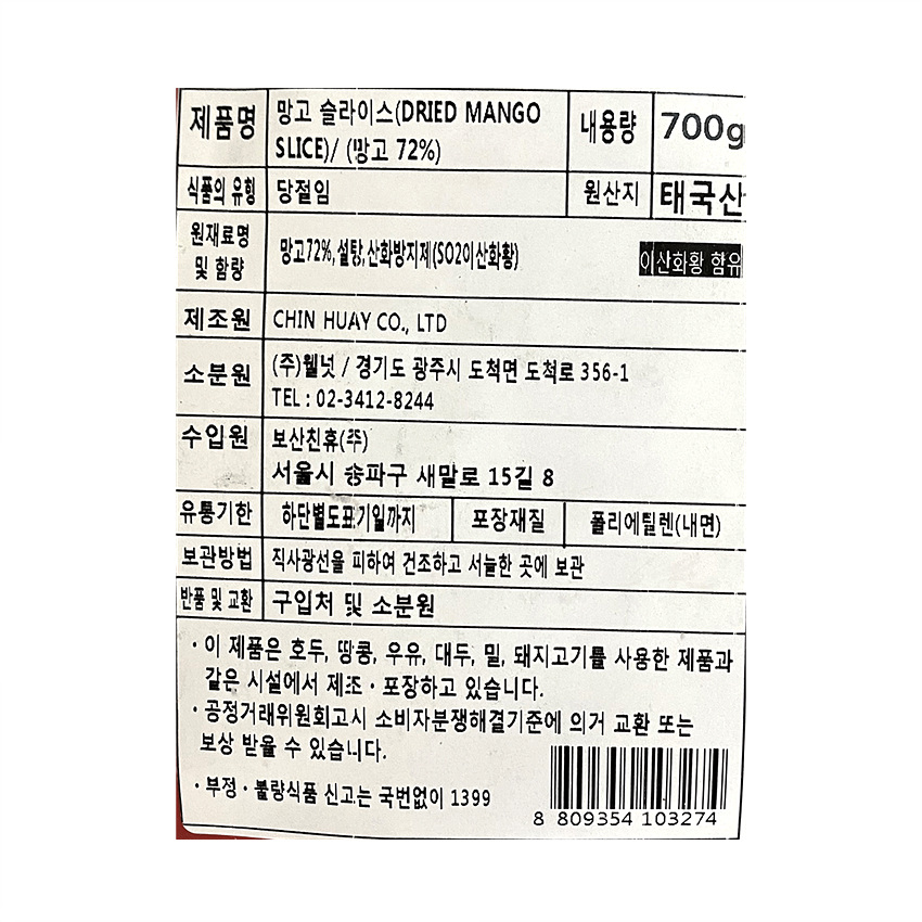 웰넛 건망고(슬라이스 700g/EA)/태국산