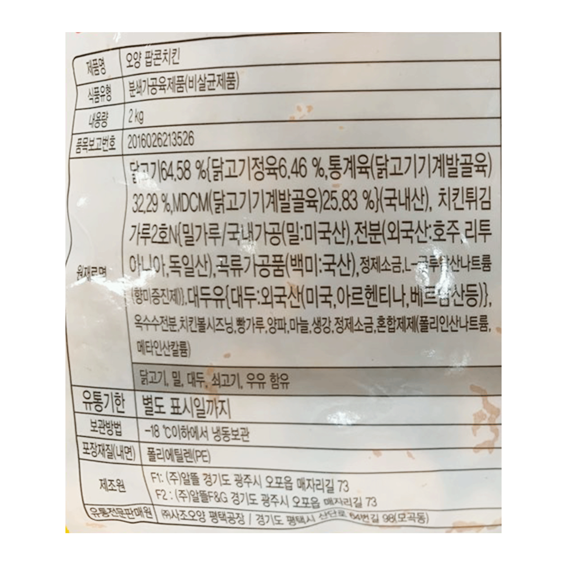 사조오양 팝콘치킨(2Kg/EA)