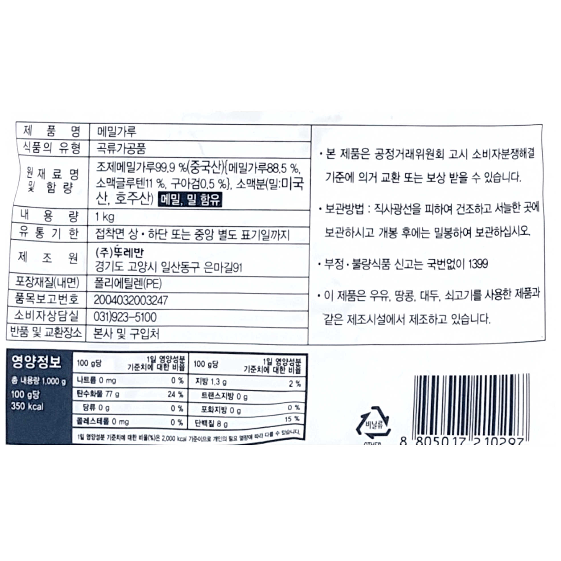 뚜레반 메밀가루(1Kg/EA) 이미지