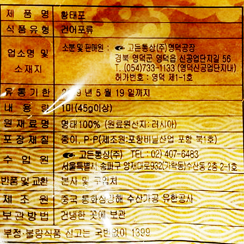 황태포(40~42cm내외_1미 제수용 60g/EA) 이미지