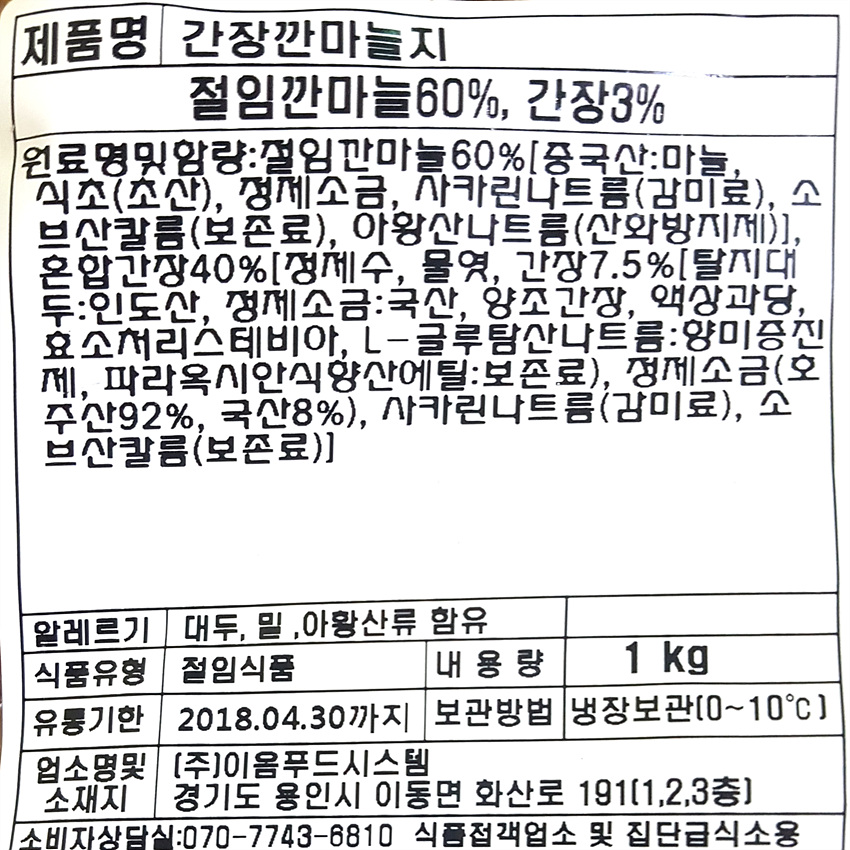 이음푸드 간장깐마늘지(1Kg/EA)  업소용 반찬 이미지