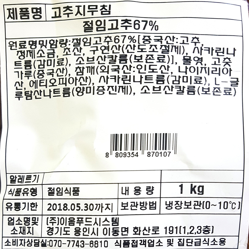 이음푸드 고추지무침(1Kg/EA) 업소용 반찬