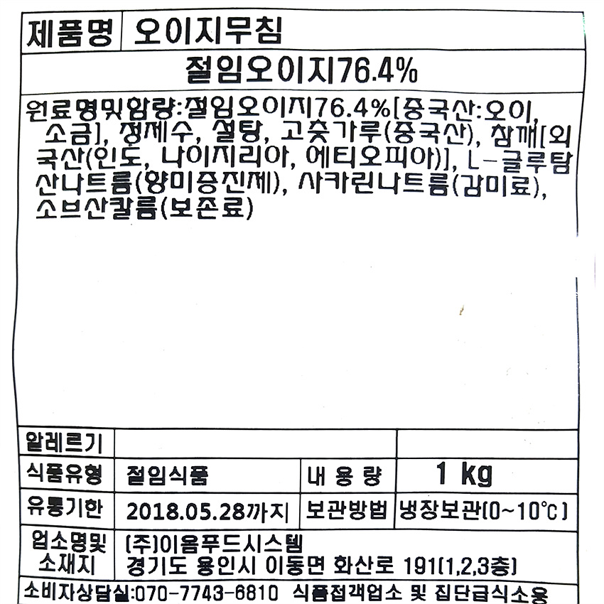 이음푸드 오이지무침(1Kg/EA) 업소용 반찬