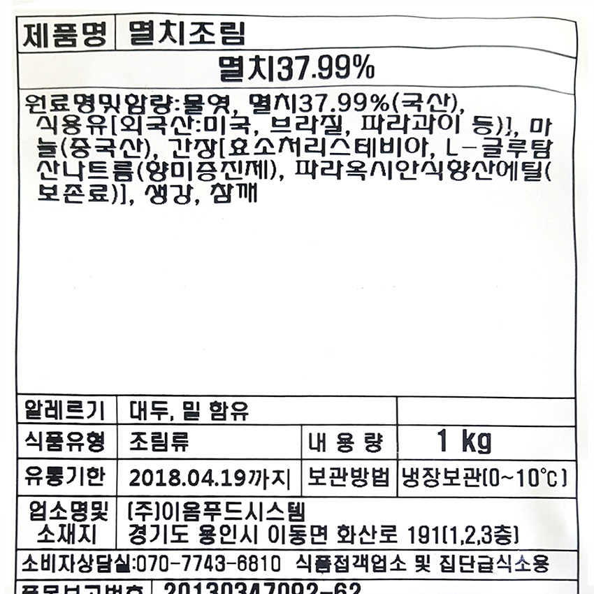 이음푸드 멸치조림(마늘포함 1Kg/EA)  업소용 반찬 이미지