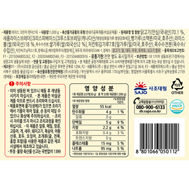 안심치킨 라이스크런치텐더스틱(1Kg/EA)