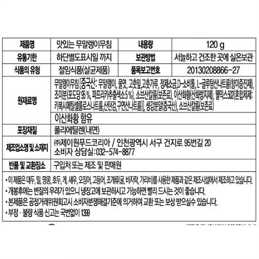 반찬단지 무말랭이무침(120g/EA)  업소용 반찬 이미지