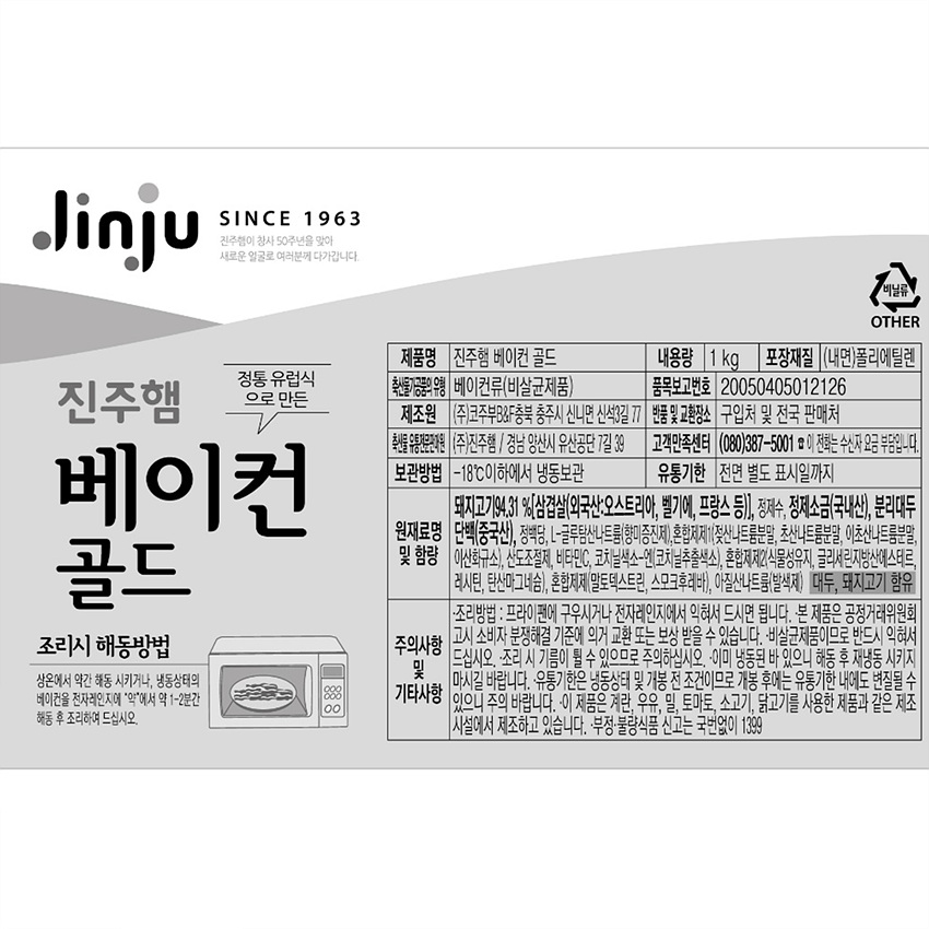 진주햄 베이컨(골드 49±1입 1Kg/EA)