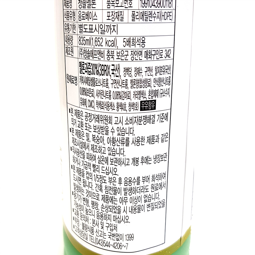 청솔FNB 메론원액(835ml 835g/EA) 이미지