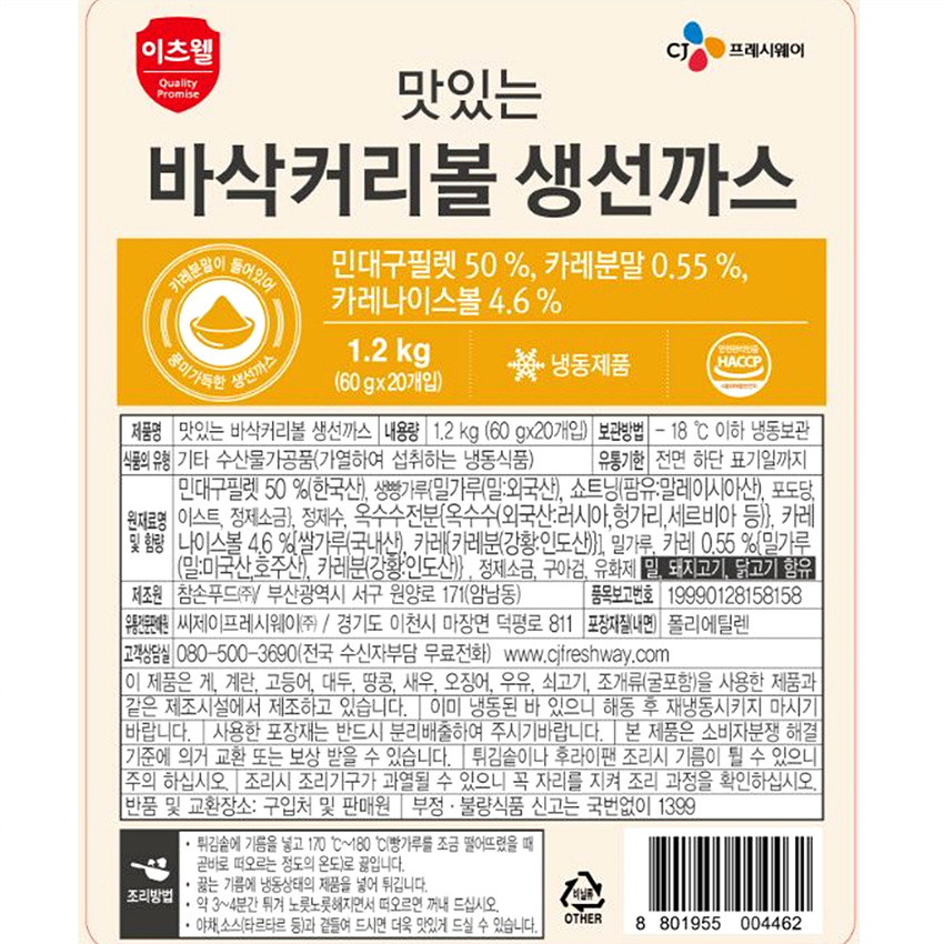 이츠웰 커리볼생선까스(60g*20입 1.2Kg/EA) 이미지