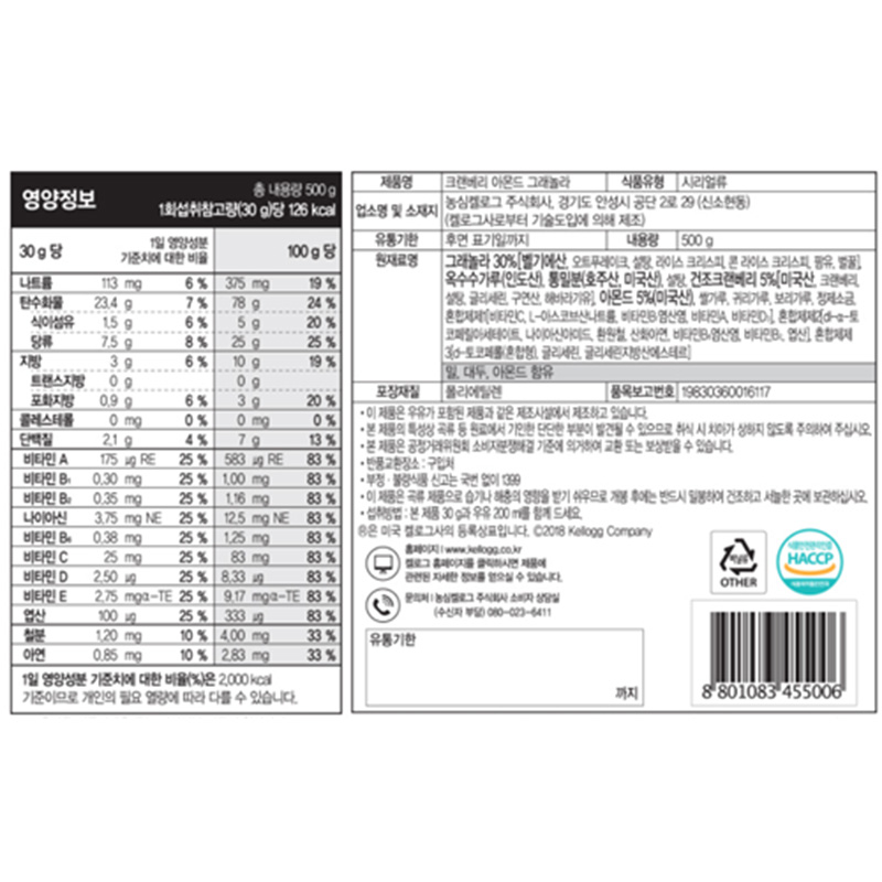 켈로그 그래놀라(크랜베리아몬드 500g/EA)