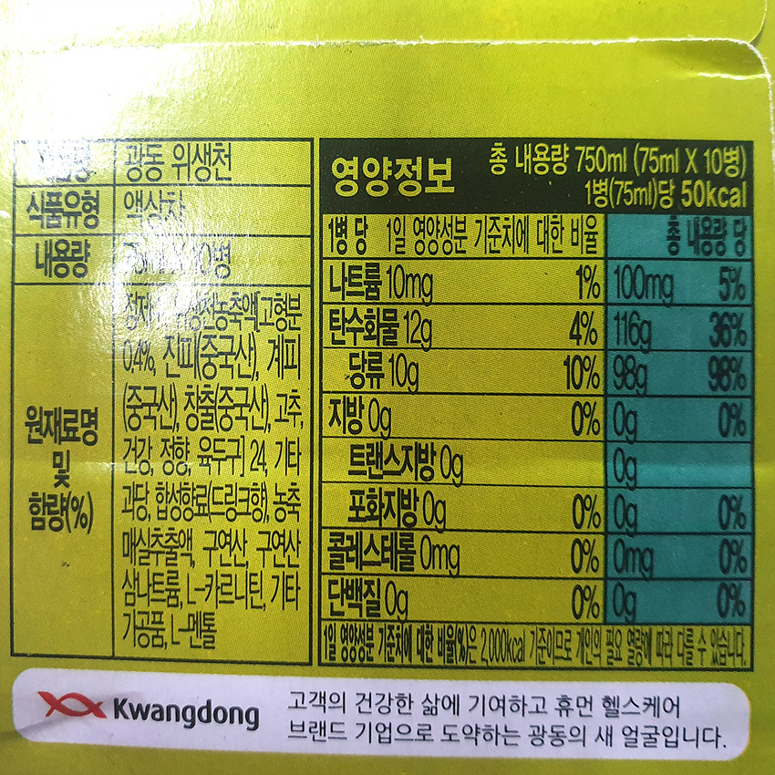 원재료명 및 함량