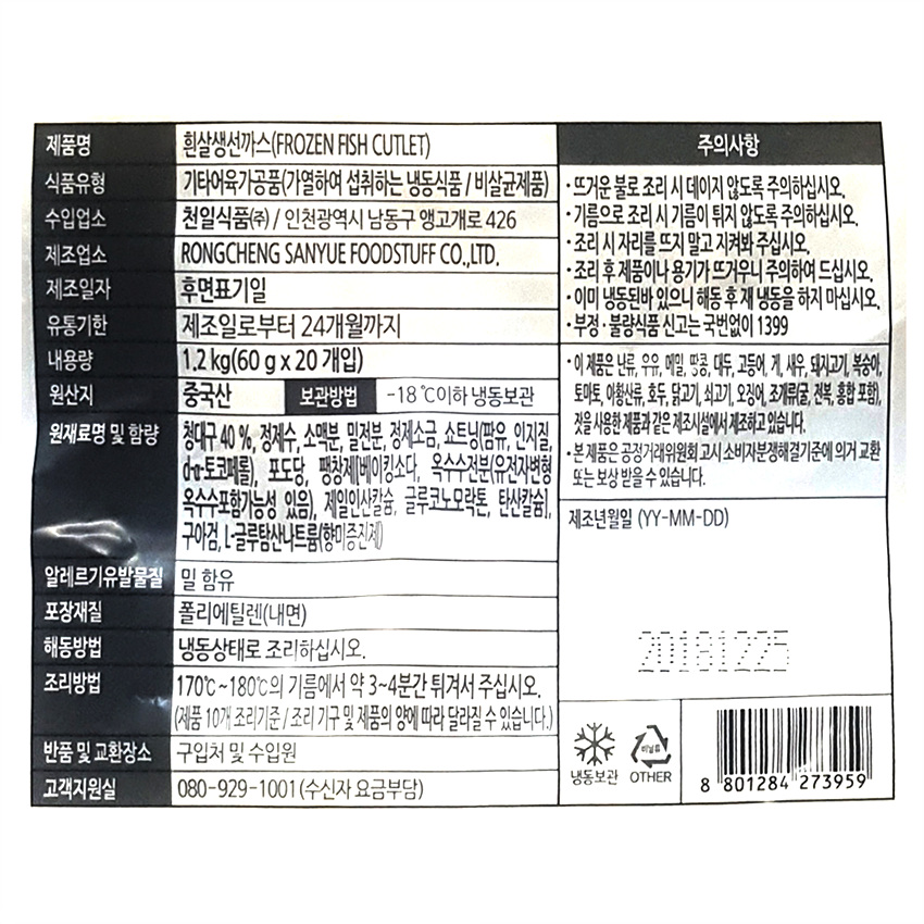 천일식품 흰살생선까스(60g*20입 1.2Kg/EA) 천일 이미지